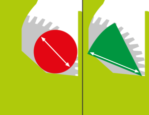 KS 600/700: Schnitttiefen von 19/23 cm und Scheitkantenlängen bis 25/35 cm.